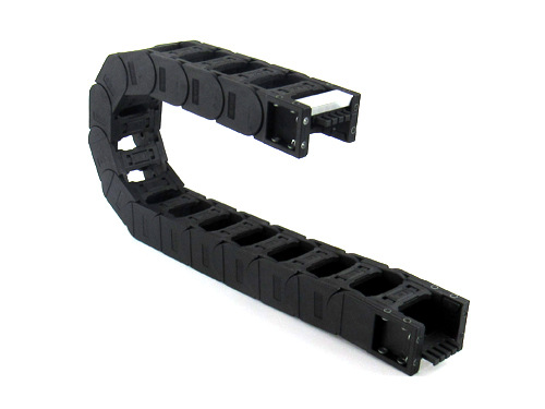 尼龍拖鏈的安裝有兩個步驟,第一:把需要內置的電線電纜放入拖鏈內,第二:把拖鏈固定在設備上面。